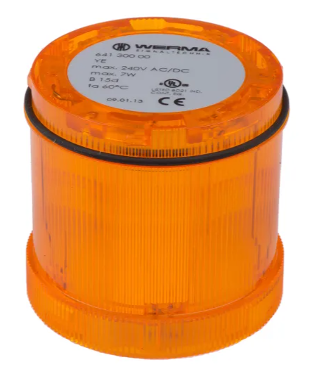 Желтый маячок Werma серии 641 с постоянным эффектом, 12 → 230 В переменного/постоянного тока, лампа накаливания, переменный ток, постоянный ток, IP65